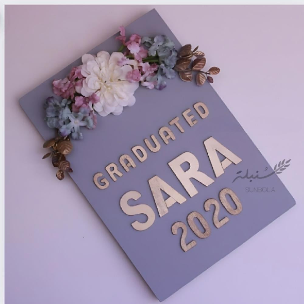 لوح خشبي مزين بالورد و عبارة بالحروف الخشبية الانجليزية ، يأتي مع حامل خشبي